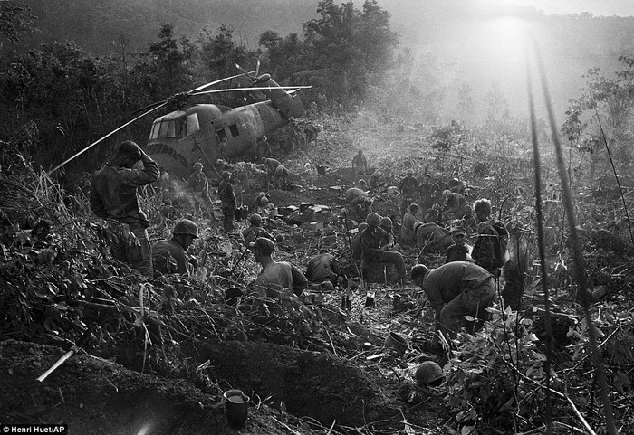 Bức ảnh của nhiếp ảnh gia người Đức từng hai lần đạt giải thưởng Pulitzer, Horst Faas, cho thấy cảnh lính Mỹ nổ súng vào bụi cây khi bố ráp căn cứ cách mạng ở phía bắc của Tây Ninh, gần biên giới Campuchia, tháng 3 năm 1965.