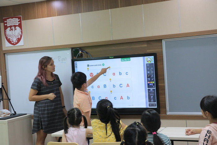 Bên cạnh đó, việc tương tác với giáo viên nước ngoài thông qua tivi cảm ứng tích hợp chương trình học cũng là một lợi thế, giúp giảm tải các tài liệu sách vở và tối ưu thời gian cho việc nói, trao đổi giữa thầy cô và học sinh trong lớp học.
