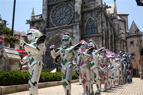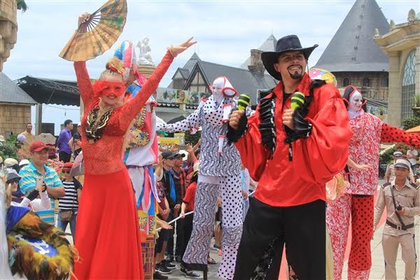 Trong không gian như cổ tích của Khu du lịch Bà Nà Hills, du khách sẽ được hòa mình trong âm nhạc rộn ràng, phấn khích với những màn biểu diễn cà kheo điêu luyện, các pha ảo thuật kỳ thú và thỏa sức thả trí tưởng tượng cùng các nhân vật cổ tích được biến hóa tài tình bằng nghệ thuật hóa trang nhân tượng.