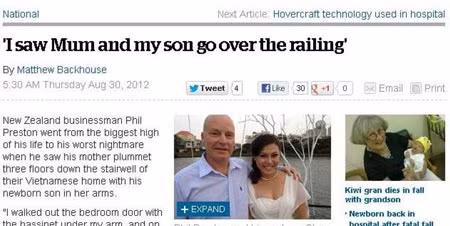 Bố bé Carter, anh Phil Preston, người đã đau đớn kể lại với nhật báo New Zealand Herald: “Tôi nhìn thấy mẹ và con trai tôi đi qua lan can” và chỉ ít phút sau thì cú sẩy chân nghiệt ngã của bà cụ đã đẩy Phil và gia đình lâm vào tình huống bi đát nhất trong đời. Trong suốt quá trình tới lui chăm bé Carter tại Bệnh viện Nhi Đồng 2, Phil và các anh em trai của mình đã nảy ra ý tưởng góp chút sức lực cho bệnh viện. “Phil và em trai anh ấy nghĩ rằng sẽ tìm hiểu thêm những thiết bị y tế bệnh viện cần để mua và chuyển giao cho bệnh viện. Phil nói làm việc này là vì sự đi xa của mẹ anh ấy và vì sự trở về cuộc sống của con trai”-chị B.C chia sẻ.