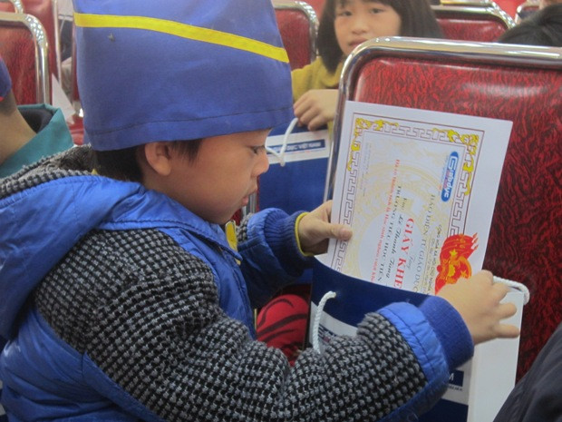 | Niềm vui của học sinh khi nhận được giấy khen và quà tết. |