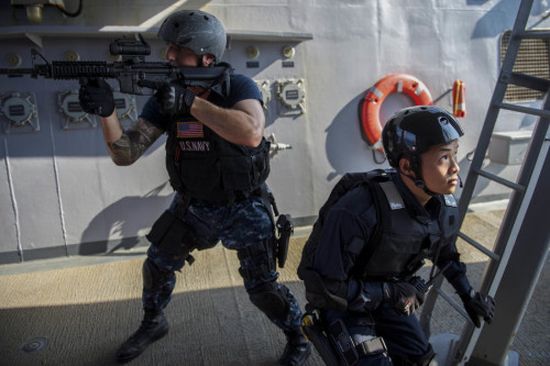 | Tập trận Malabar 2014: Binh sĩ đặc nhiệm Mỹ-Nhật chống khủng bố trên tàu ngày 27 tháng 7 năm 2014 |