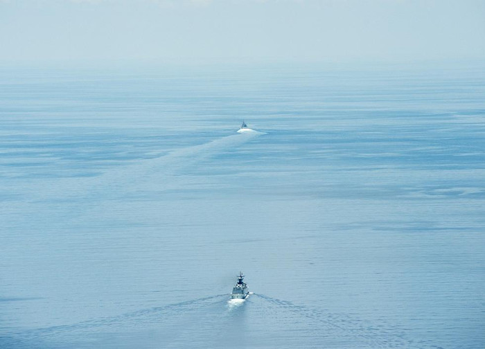 | Tàu tuần duyên USS Fort Worth Hải quân Mỹ hoạt động ở gần đảo Trường Sa của Việt Nam, bị tàu hộ vệ Diêm Thành (biên chế cho Hạm đội Bắc Hải, Hải quân Trung Quốc vào năm 2012) theo dõi (nguồn báo Hoàn Cầu, Trung Quốc) |