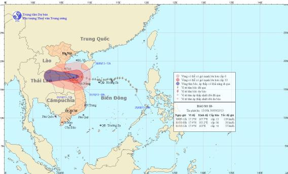 Hồi 12 giờ ngày 30/9, vị trí tâm bão ở vào khoảng 17,3 độ Vĩ Bắc; 107,7 độ Kinh Đông, trên vùng biển các tỉnh Hà Tĩnh – Quảng Trị. Sức gió mạnh nhất ở vùng gần tâm bão mạnh cấp 12, cấp 13 (tức là từ 118 đến 149 km một giờ), giật cấp 15, cấp 16.