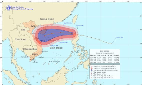 Hồi 04 giờ ngày 01/11, vị trí tâm bão ở vào khoảng 18,7 độ Vĩ Bắc; 119,8 độ Kinh Đông, cách quần đảo Hoàng Sa khoảng 850km về phía Đông Đông Bắc. Sức gió mạnh nhất vùng gần tâm bão mạnh cấp 11, cấp 12 (tức là từ 103 đến 133 km một giờ), giật cấp 14, cấp 15.