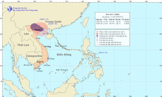 Hồi 10 giờ ngày 03/8, vị trí tâm bão ở vào khoảng 21,5 độ Vĩ Bắc; 107,1 độ Kinh Đông, trên đất liền các tỉnh Đông Bắc Bắc Bộ. Sức gió mạnh nhất ở vùng gần tâm bão mạnh cấp 8 (tức là từ 62 đến 74 km một giờ), giật cấp 9, cấp 10.