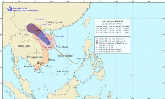 Hồi 13 giờ ngày 07/8, vị trí tâm bão ở vào khoảng 18,9 độ Vĩ Bắc; 107,5 độ Kinh Đông, cách bờ biển Hải Phòng – Thanh Hóa khoảng 190km về phía Đông Nam. Sức gió mạnh nhất ở vùng gần tâm bão mạnh cấp 8, cấp 9 (tức là từ 62 đến 88 km một giờ), giật cấp 10, cấp 11.