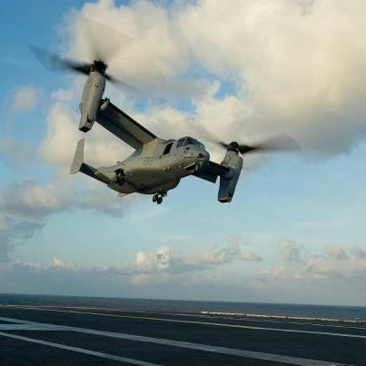 | Máy bay vận tải cánh xoay MV-22 Osprey của Lính thủy đánh bộ Mỹ. |
