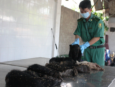 Tại đây, cơ quan phát hiện có 2 gấu con (4 kg/con), 2 con hổ (2kg/con), 8 chân và tay gấu loại lớn cùng 120kg đuôi và chân bò. Tuy được ướp lạnh nhưng tất cả đã bốc mùi hôi thối.