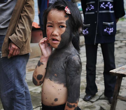 Liu Jiangli, 6 tuổi, từ khi sinh ra đã có một lớp lông đen, dày phủ mọc ở mặt và hơn 60% cơ thể.