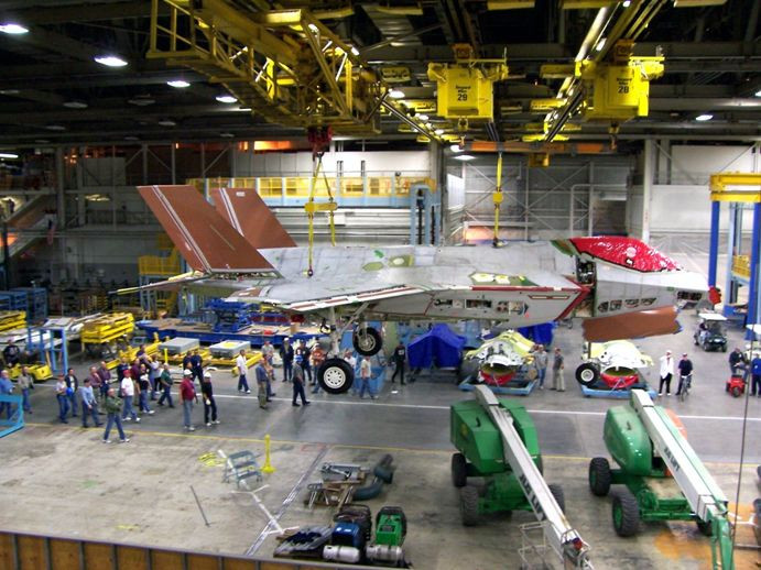 (GDVN) - F-35 có tên gọi chính thức là “Lightning II” (Tia chớp II) được thiết kế và xây dựng bởi một tổ hợp công nghiệp hàng không do Lockheed Martin dẫn đầu và các thành viên khác là BAE Systems và Northrop Grumman. Siêu tiêm kích tàng hình thế hệ thứ năm F-35 được giới quân sự Mỹ đánh giá là tiêm kích hiện đại nhất hiện nay. Cận cảnh bên trong nhà máy sản xuất siêu tiêm kích “Tia chớp” F-35.