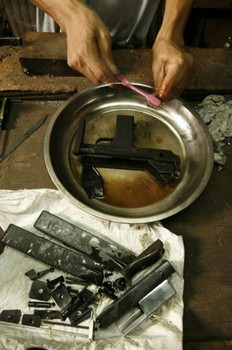 | Theo tờ Asahi Shimbun của Nhật Bản, các xưởng sản xuất súng tại đây có thể chỉ cần 3 người làm việc trong 1 tuần là cho ra mắt một khẩu súng lục tự động cỡ nòng 0,45. |