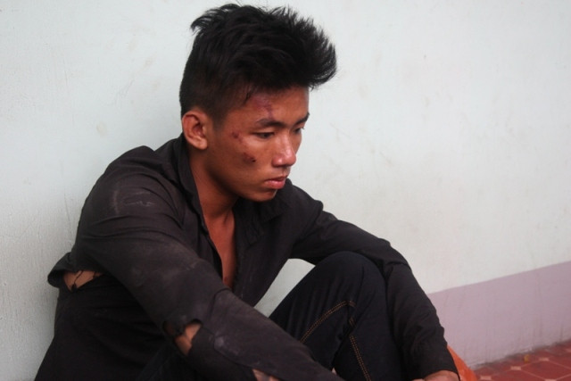 | Nguyễn Trọng Tâm và Huỳnh Trọng Nguyên tại cơ quan công an |