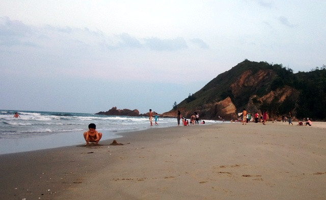 | Nhiều du khách đã đến tắm biển tại bãi biển Đá Nhảy, (xã Thanh Trạch, huyện Bố Trạch, Quảng Bình). (Ảnh: Thủy Phan) |