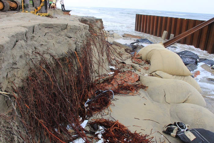 | Khoảng một tuần trở lại đây, mưa lớn, sóng biển dâng cao đã đánh sập hàng rào chắn bằng bê-tông khiến bở biển Cửa Đại dài khoảng 3km (phường Cửa Đại, thành phố Hội An, Quảng Nam) sạt lở nghiêm trọng. Nhiều nhà hàng, khách sạn, resort...dọc bờ biển này bị đe dọa, có nguy cơ trôi ra biển. |
