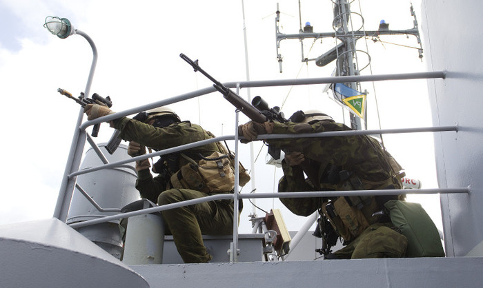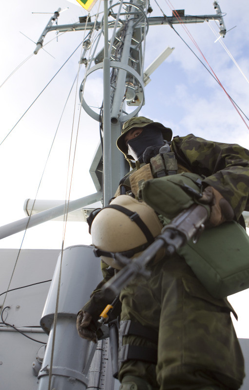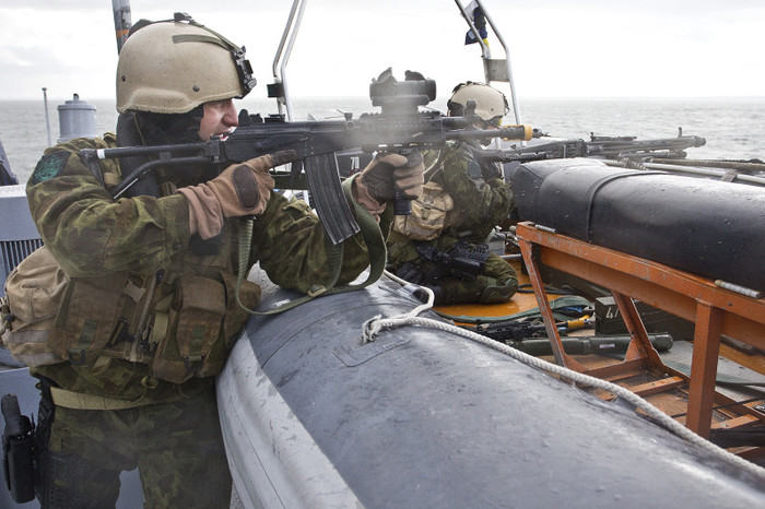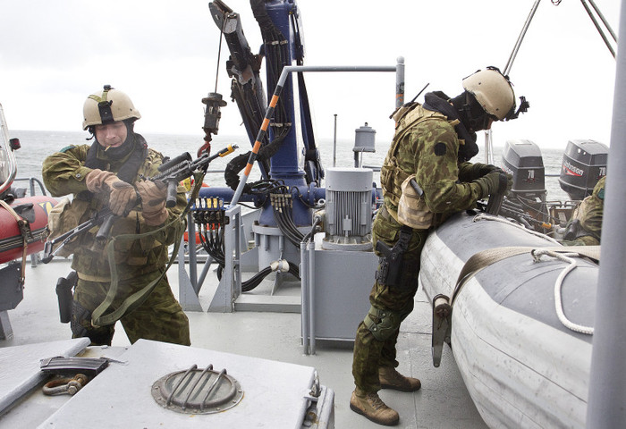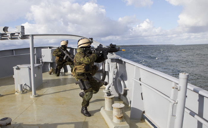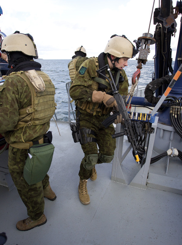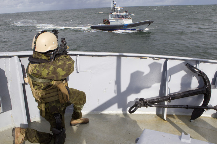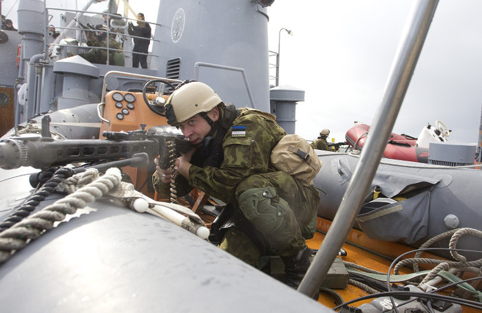 (GDVN) - Ngày 7/10/2011 vừa qua, Biệt đội bản vệ tàu thuyền (Ship Protection Team) của lực lượng phòng thủ quân đội Estonia đã tiến hành một cuộc diễn tập bắn đạn thật mô phỏng tình huống giả định là một tàu thương mại của nước này bị khủng bố tấn công ở ngoài vùng biển thuộc chủ quyền.