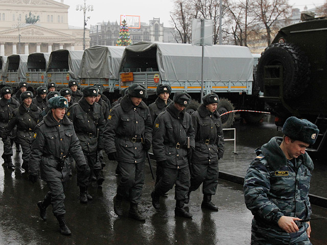 Ảnh người biểu tình và lực lượng an ninh được triển khai tại quảng trường Cách mạng, trung tâm thủ đô Moscow ngày 10/12 trước thời điểm diễn ra cuộc biểu tình lớn nhất trong 2 thập kỷ qua.