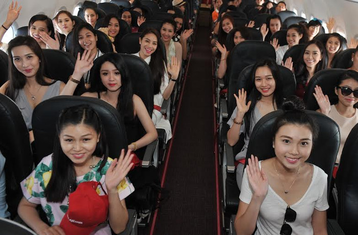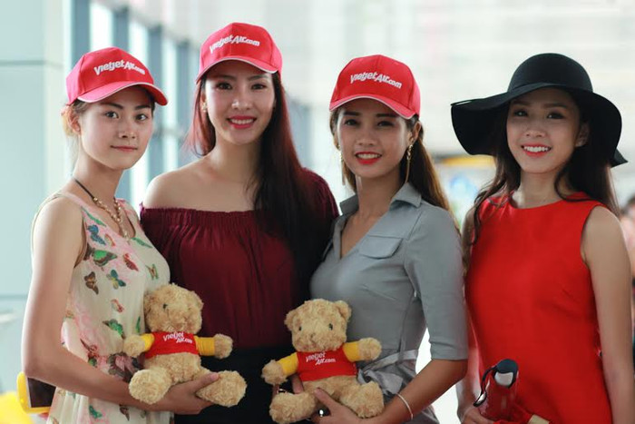| Các người đẹp đến Nha Trang trên chuyến bay Vietjet |