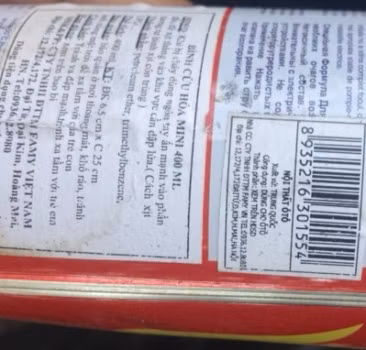 Bình cứu hỏa mà anh D. mua tại siêu thị BigC trên vỏ có ghi thông tin: nhà cung cấp là Công ty TNHH ĐTTM FAMY VN, địa chỉ là 12,172/4,172 Đại Từ, Đại Kim, Hoàng Mai, Hà Nội. Dưới đáy bình có ghi hạn sử dụng đến năm 2017.