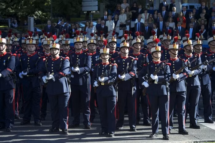 | Vua Tây Ban Nha Juan Carlos tham gia duyệt đội danh dự mừng Ngày Quốc khánh. |