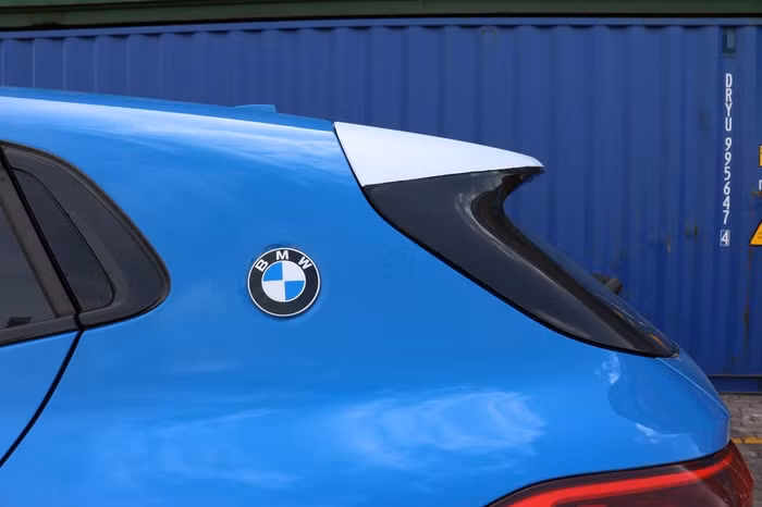 Một số hình cận cảnh BMW X2 tại cảng VICT - Thành phố Hồ Chí Minh đã hé lộ một vài tính năng và phiên bản xe sắp được ra mắt. Phóng viên đã tiếp cận được hai phiên bản màu khác nhau của BMW X2 là xanh dương Misano Blue và đỏ cam Sunset Orange.