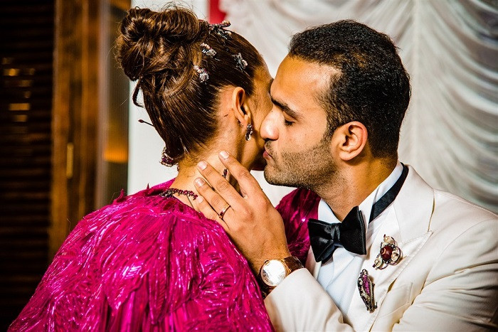 Chú rể Rushang Shah âu yếm thể hiện tình yêu với vị hôn thê đại gia của mình.