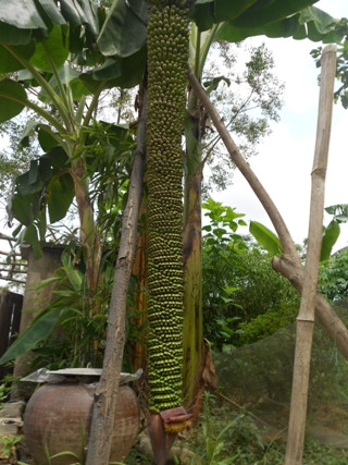 Theo chủ nhà sở hữu cây chuối trên, cây chuối này là loại chuối tiêu được gia đình ông trồng cách đây 1 năm. Cách đây khoảng 5 tháng, cây chuối bắt đầu trổ buồng.