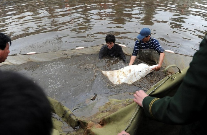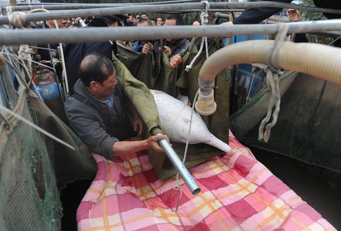 (GDVN) - Giữa tháng 3 vừa qua tại thành phố Phật Sơn, tỉnh Quảng Đông, dân làng trong vây quanh sông chen nhau xem cá Heo trắng Trung Hoa. Sau hai lần được cứu chữa, chú cá heo này được đưa lên bờ và đưa vào khu bảo tồn động vật quý hiếm quốc gia. Chú cá heo trắng dài khoảng 1.5m, đã thu hút sự chú ý của hàng nghìn người. Cá heo trắng Trung Hoa là một sinh vật biển quí hiếm đang có nguy cơ tuyệt chủng trên thế giới, và cũng là động vật biển duy nhất được chăm sóc và bảo tồn đặc biệt tại Trung tâm bảo tồn động vật biển quốc gia Trung Quốc, chú được xếp vào cùng hàng với cá heo trắng, gấu trúc, hổ Hoa Nam.