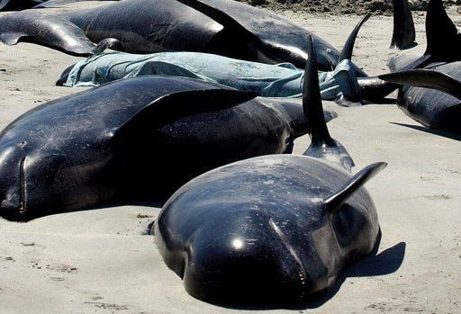 | Mới đây, đầu năm 2012, 90 chú cá voi sát thủ đã bị mắc cạn trên bờ biển New Zealand. Cảnh tượng cá voi nằm la liệt trên bãi cát khiến không ít người phải sửng sốt. |