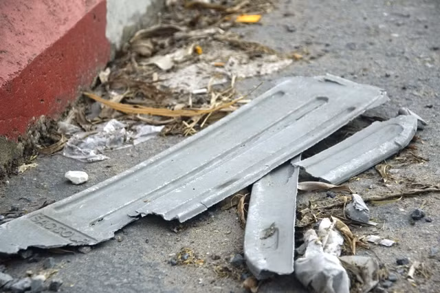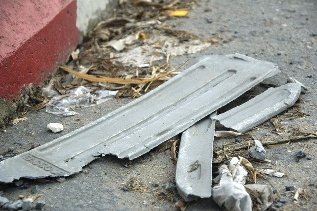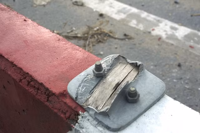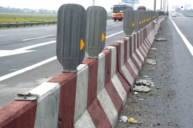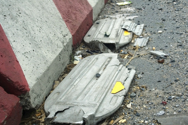 | Những tấm chống lóa giao thông bị hư hỏng được bỏ lại dưới đường |