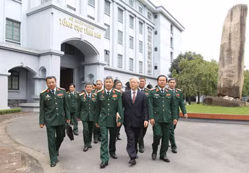Tổng Bí thư Nguyễn Phú Trọng thăm và làm việc với Tổng cục II, Bộ Quốc Phòng. Ảnh: TTXVN