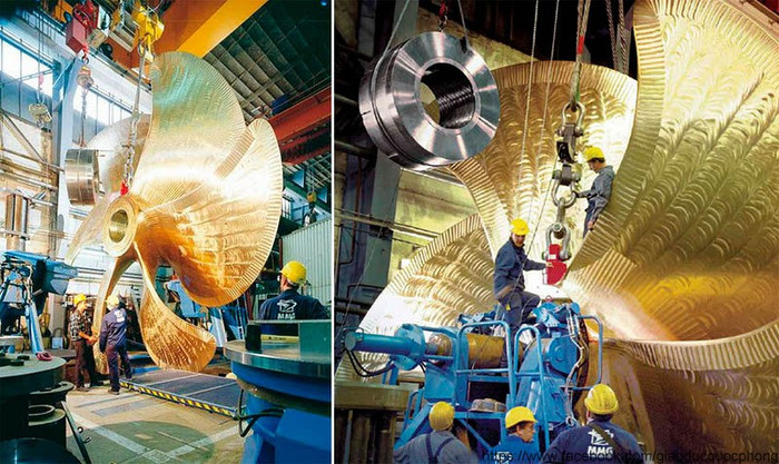 (GDVN) - Những chiếc chân vịt tàu thủy tựa như những cánh quạt tai voi khổng lồ. Đối với tàu thuyền, động cơ và chân vịt là một trong những hệ thống quan trong nhất giúp những siêu du thuyền hay chiến hạm của hải quân đi xuyên, vượt đại dương.