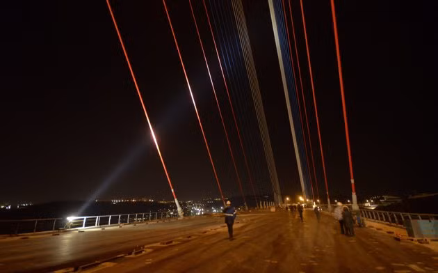 | Cây cầu này của Nga đã vượt qua câu cầy Sutong của Trung Quốc (dài 1088m) để trở thành cây cầu dây văng dài nhất thế giới. |