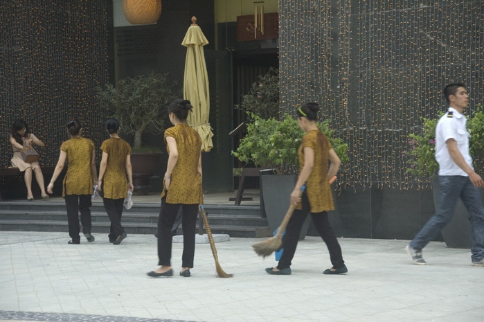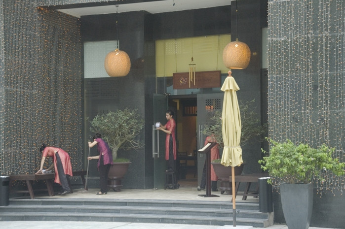 | Sau khi người dân ra về hết, thì các cửa mới được mở trở lại và nhân viên quán Ngon tiếp tục lau chùi |