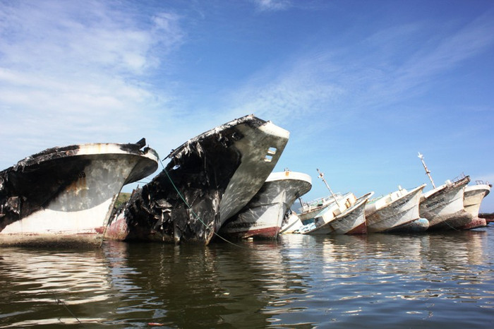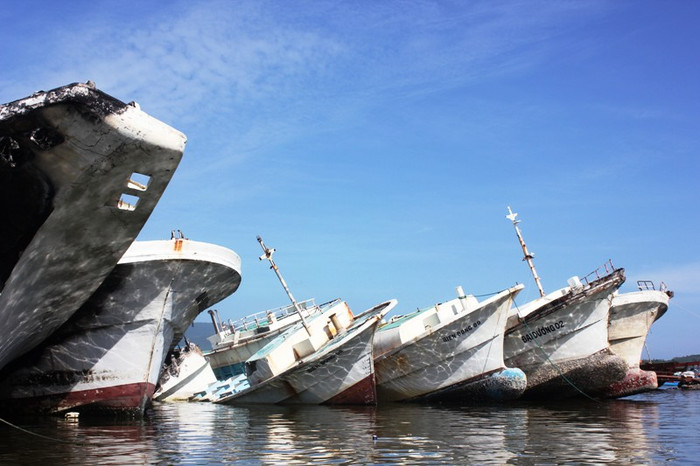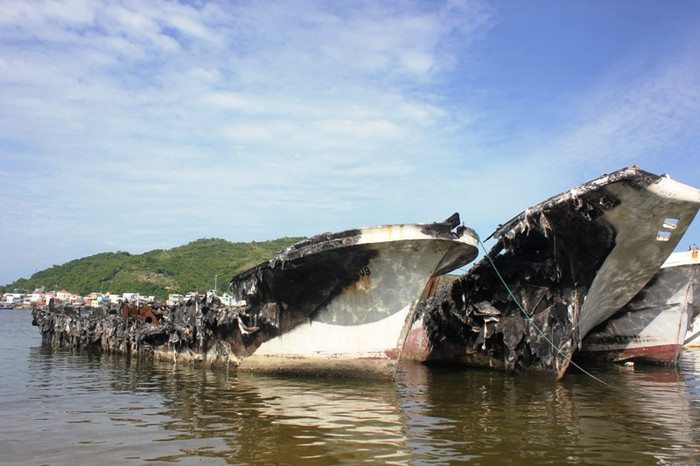 | Theo giá được Trung tâm dịch vụ bán đấu giá tài sản tỉnh Khánh Hòa đưa ra thì hiện mỗi chiếc tàu có giá từ 40 triệu đến 81 triệu đồng đã bao gồm thuế giá trị gia tăng. Tính ra trung bình mỗi tấn tàu có giá 500 – 900 ngàn đồng. Nhìn những con tàu bị cháy và hư hỏng như vậy rất nhiều ngư dân tỏ ra tiếc nuối cho số phận của chúng. Sau đây là hình ảnh 7 con tàu tiền tỷ nói trên mà CTV báo Giáo dục Việt Nam vừa ghi lại ngày 27/10/2012. |