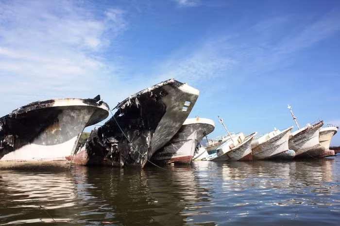 | Theo ông Nguyễn Công Định, Giám đốc Sở giao thông và vận tải tỉnh Khánh Hòa thì đây là đội tàu thuộc sở hữu của một công ty cho thuê tài chính cho Công ty kinh doanh khai thác thủy sản Đại Dương tại Nha Trang thuê để đánh cá nhưng làm ăn không hiệu quả. Từ năm 2007 đến nay, đội tàu neo đậu tại Hòn Rớ thiếu sự coi trông nên hầu hết thiết bị máy móc đã bị mất cắp. Đặc biệt, tháng 5 năm 2012, đội tàu đã hư hỏng nặng sau vụ hỏa hoạn. |