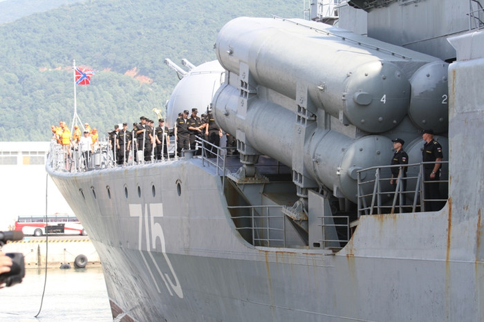 | Lễ đón chính thức diễn ra ngay tại cầu cảng Tiên Sa. Tham gia lễ đón phía Việt Nam có Bộ Tư lệnh Vùng 3 Hải quân; Cục Đối ngoại, Bộ Quốc phòng; Văn phòng Bộ Tư lệnh Quân khu 5; Bộ Chỉ huy Bộ đội Biên phòng TP; Bộ Chỉ huy Quân sự TP; Sở Ngoại vụ...Phía Nga có: Ngài Konstantin Vasilievich Vnukov, Đại sứ Đặc mệnh toàn quyền Liên bang Nga tại Việt Nam; ông Brovarets Andrei Petrovich, Tổng Lãnh sự Liên bang Nga tại TP Đà Nẵng; Đại tá Andrey P.Likhachev, Tùy viên Quốc phòng Liên bang Nga tại Việt Nam. |