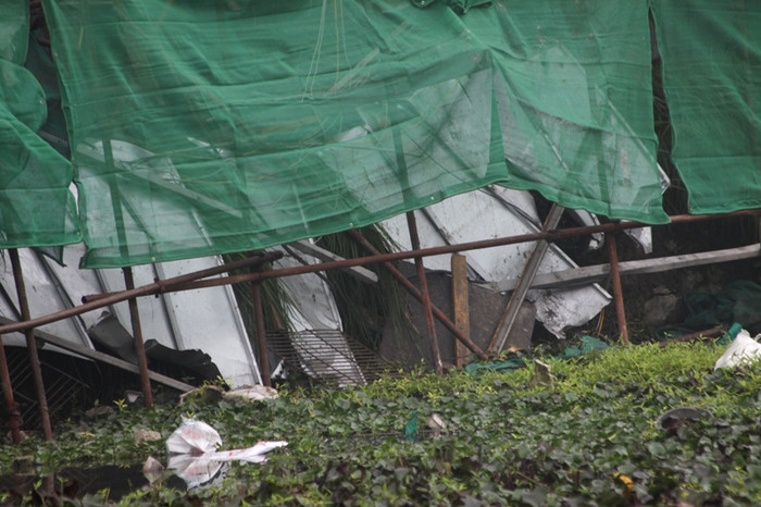 | Những thanh giáo vứt chỏng chơ dưới khu ruộng rau muống sình lầy. |
