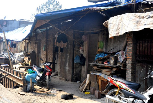 | Không chỉ là nơi để sinh sống, khu “nhà ổ chuột” còn có hoạt động của xưởng gỗ, hàn xì, thu mua sắt vụn… làm việc hàng ngày. |