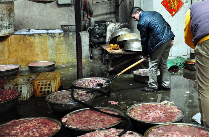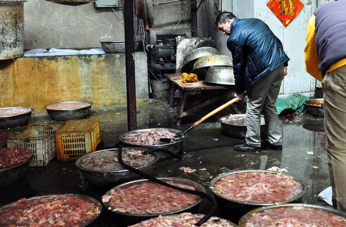 Ngày 4/4 tờ QQ News Trung Quốc đưa tin, cảnh sát thành phố Trịnh Châu thủ phủ tỉnh Hồ Nam vừa triệt phá một lò chuyên cung cấp thịt xiên nướng bẩn cho người bán rong ở cổng trường học. Những xiên thịt nướng vàng ươm này được chế biến chủ yếu từ lợn chết, gà bệnh và phẩm màu. Chứng kiến công đoạn chế biến thịt xiên nướng, nhiều phụ huynh không khỏi giật mình về thức ăn đường phố mà con em họ vẫn đòi mỗi khi tan học.