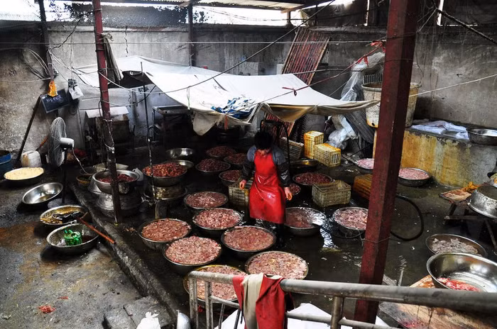 Toàn cảnh xưởng chế biến thịt bẩn thành thịt xiên nướng.