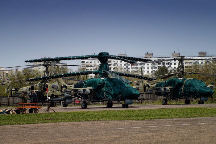 | Được phát triển dựa trên trực thăng “Cá mập đen” Ka-50 Black Shark , NATO gọi là Hokum, trực thăng chiến đấu đa năng mọi thời tiết Kа-52 Alligator có thể tiêu diệt phương tiện bọc thép và không bọc thép, sinh lực và mục tiêu bay trên chiến trường, cả ban ngày và ban đêm, trong mọi mùa trong năm, sử dụng được tất cả các loại vũ khí của Kа-50. |