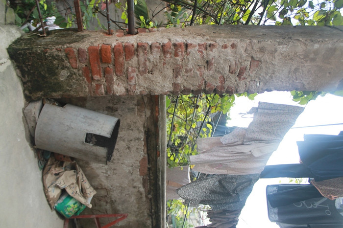 | Để tránh sập, người dân phải đổ trụ để chống vào phần chiếu nghỉ. |