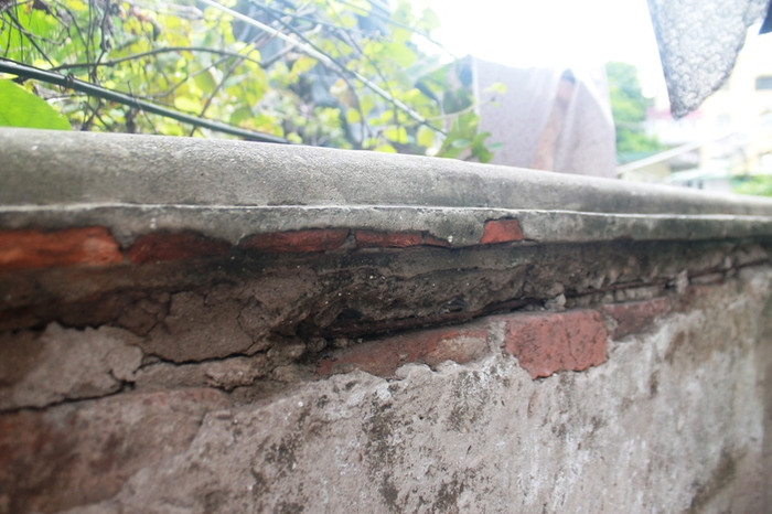 Theo bà Miền, nhiều chỗ trong khu nhà để đảm bảo an toàn người dân đã phải đổ trụ bê tông gia cố chống đỡ khu vực sung yếu. Trong khi đó hệ thống khung, cột nhà đều bong tróc vữa còn trơ sắt. Để tránh tình trạng ngấm nước chảy trong nhà các hộ dân đã cạo bỏ lớp vữa cũ để trát lại, tuy nhiên tình trạng nước ngấm dột mỗi khi trời mưa vẫn diễn ra.