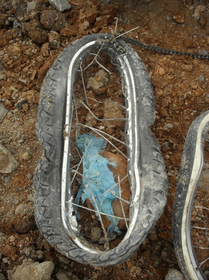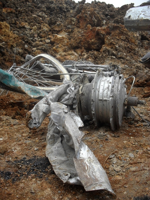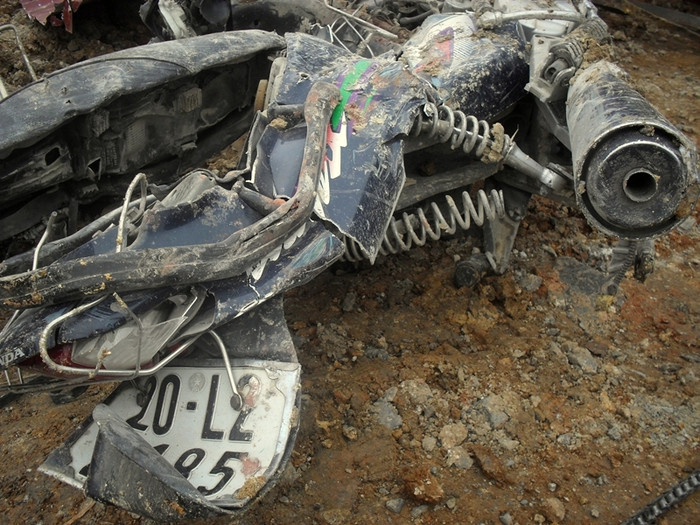 | Chiếc xe máy của ông Hoàng Văn Trường nát như tương. |