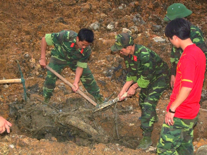 | Vật lộn đào bới, giải phóng hàng vạn khối đất đá, lực lượng cứu nạn mới chỉ lấy được một vài đồ dùng của các nạn nhân. |