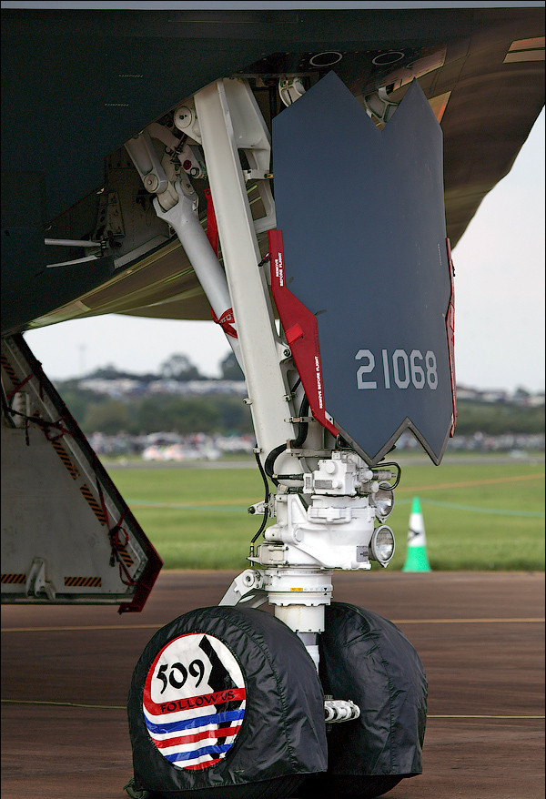 | Cận cảnh bánh xe của oanh tạc cơ B-52. |