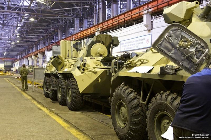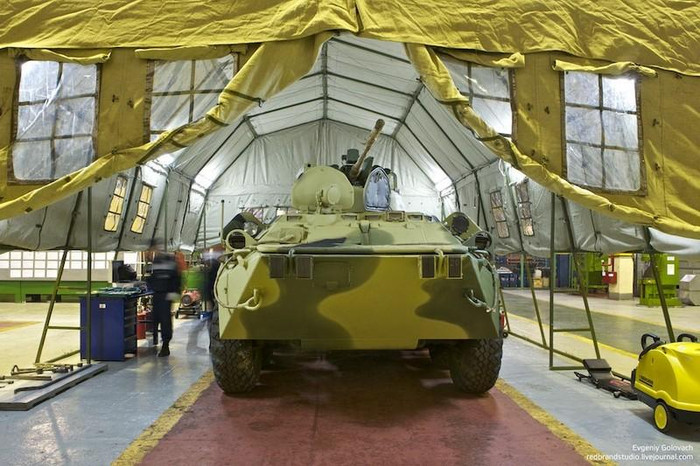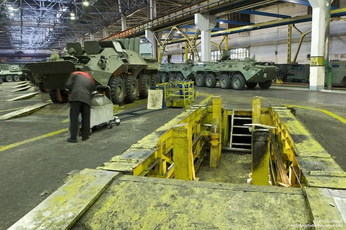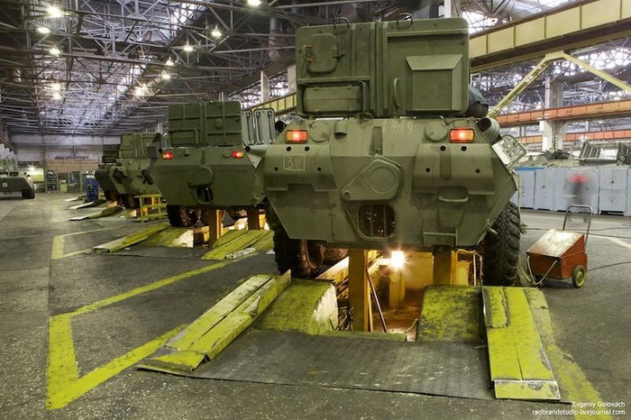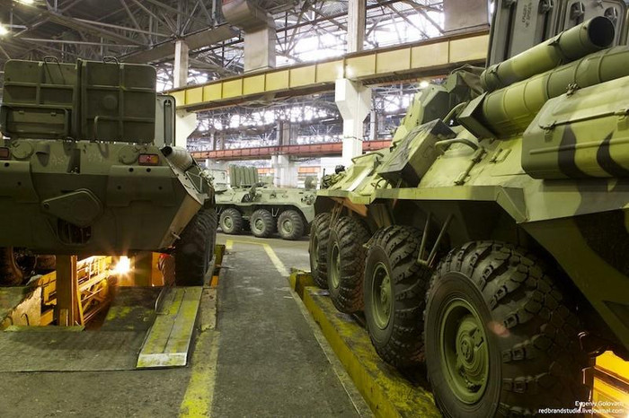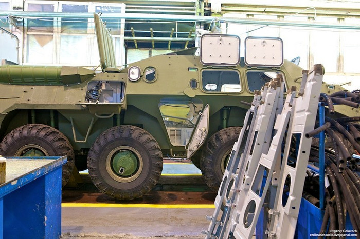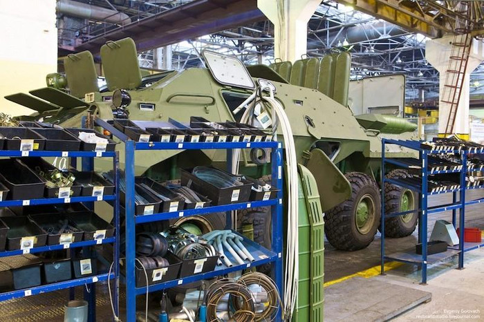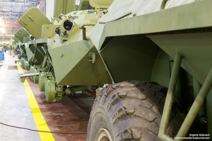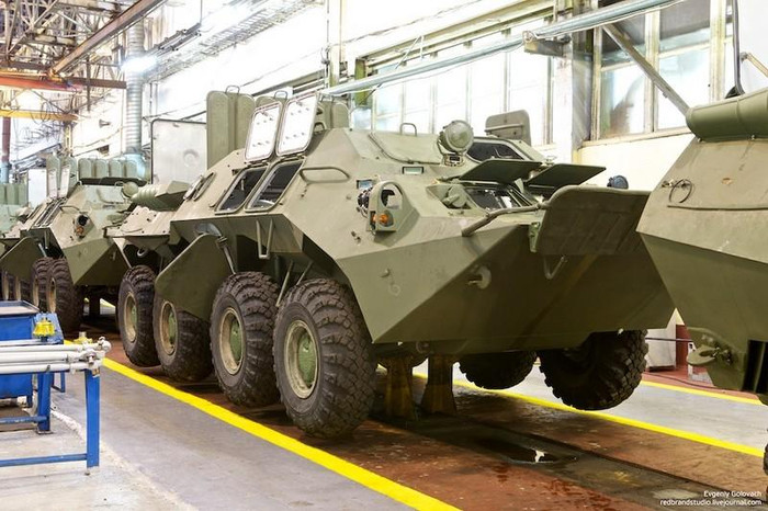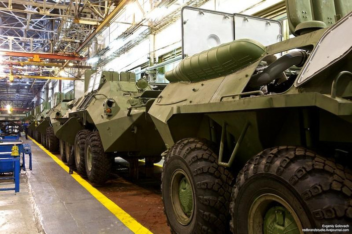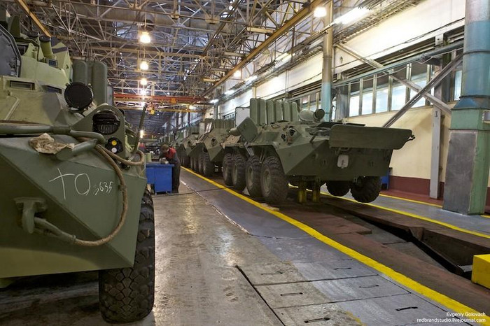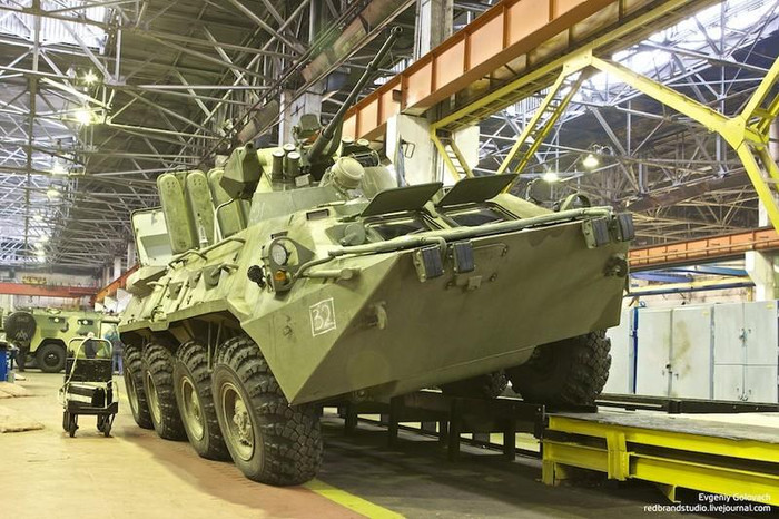 (GDVN) - Cận cảnh qui trình lắp ráp và thử nghiệm xe bọc thép bên trong nhà máy Arzamas của Nga. Hàng loạt các chiến xa bọc thép BTR-80A, BTR-80... được lắp ráp, thử nghiệm với qui trình nghiêm ngặt. Với dây truyền sản xuất hiện đại và liên tục được vận hành bởi 3 kíp mỗi ngày, nhà máy có thể hoàn thành chế tạo với tốc độ từ 3 - 5 chiếc xe bọc thép chỉ trong thời gian 24 giờ.