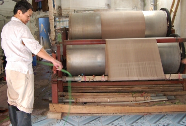 | Hiện nay, đất trống không còn chỗ để phơi, thay vì phơi thì đã có nhiều sưởng sấy lụa |