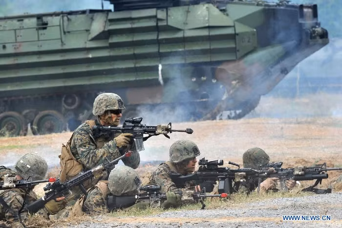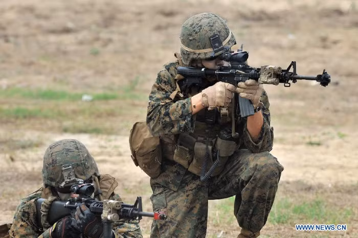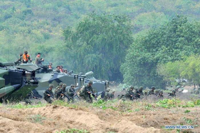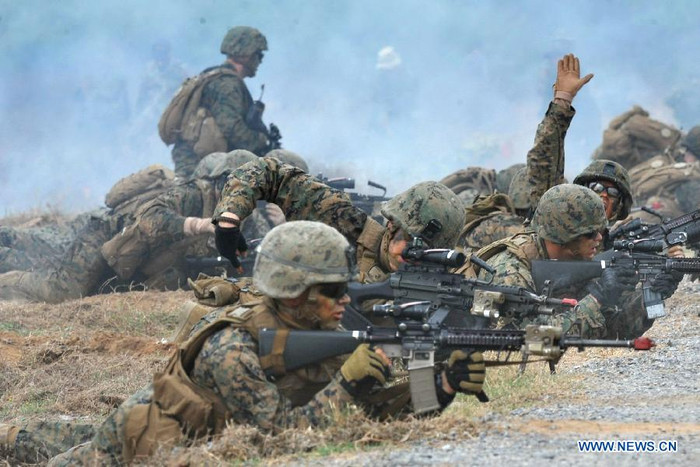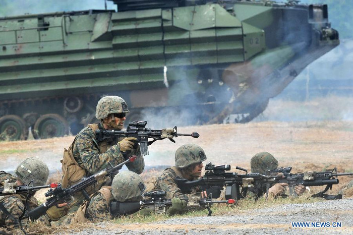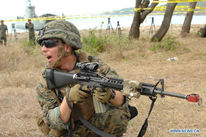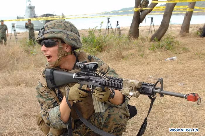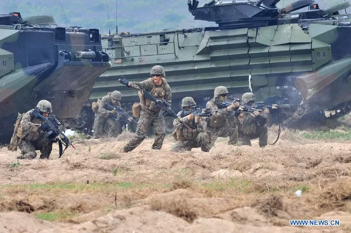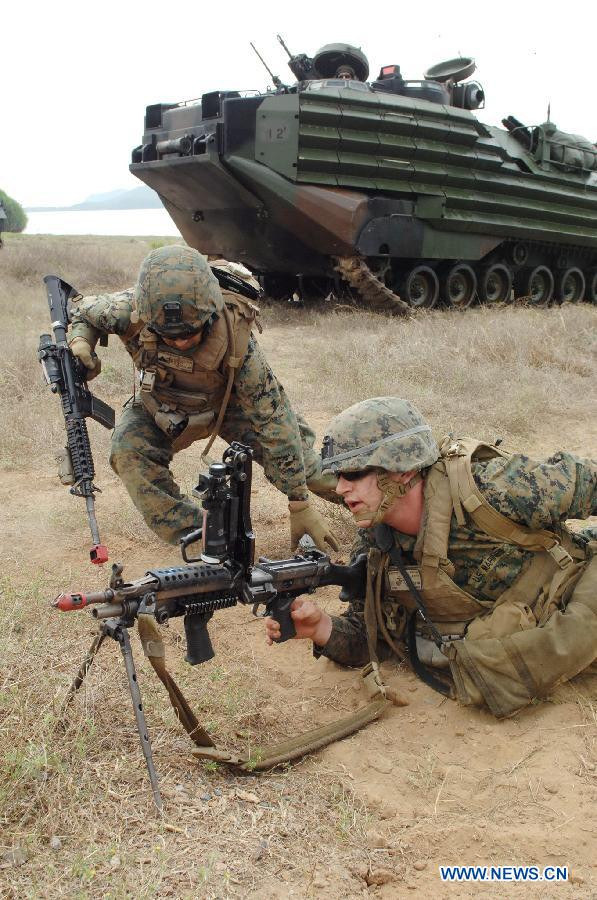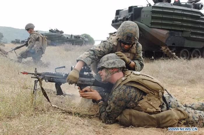 (GDVN) - Cuộc tập trận đa quốc gia thường niên Hồ Mang Vàng 2012 đã bắt đầu hôm 7/2 tại miền đông Thái Lan và dự kiến sẽ kéo dài trong khoảng 10 ngày. Đây là cuộc tập trận quy mô lớn nhất Đông Nam Á nhằm tăng cường an ninh khu vực giữa những nước cùng chung cam kết an ninh ở châu Á – Thái Bình Dương của 7 quốc gia (Mỹ, Hàn Quốc, Nhật Bản, Thái Lan, Singapore, Indonesia, Malaysia). Tất cả 13.180 nhân viên quân sự, trong đó lính Mỹ chiếm 9.000 người, đã tham gia cuộc tập trận năm nay. Ảnh tập trận Hổ Mang Vàng tại bãi biển Hat Yao, tỉnh Chonburi, Thái Lan ngày 10/2.